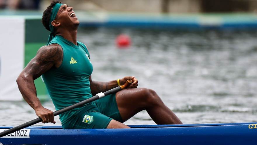 22 de 23Isaquias Queiroz ao fim da prova que lhe deu o ouro olímpico