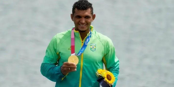 23 de 23Isaquias Queiroz com a medalha de ouro em Tóquio • COB
