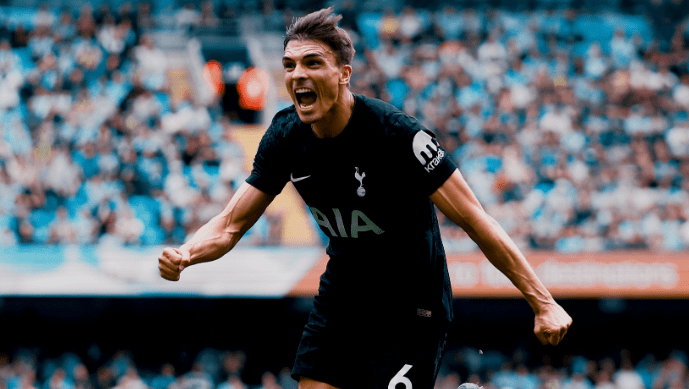 4 de 5Joao Palhinha marcou gol do Tottenham • Reprodução