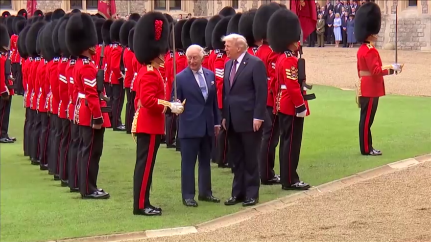 4 de 6Trump e Melania recebidos com cerimônia por rei Charles e rainha Camilla no Reino Unido • Reprodução/Reuters