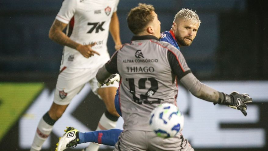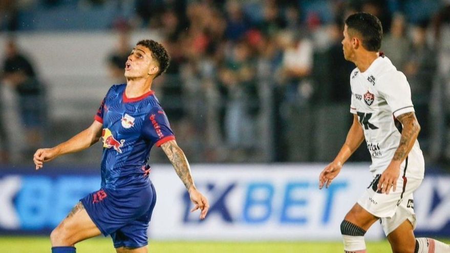 6 de 6Gustavo Neves em lance de Bragantino x Vitória, nesta quarta (3); o time paulista goleou os visitantes por 4 a 0