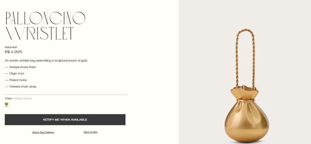A bolsa Pulseira Palloncino da Cult Gaia usada para compor a produção é avaliada em R$4.995. Assim como os acessórios usados no evento, o anel de noivado de Giulia Be também é da marca Tiffany & Co.