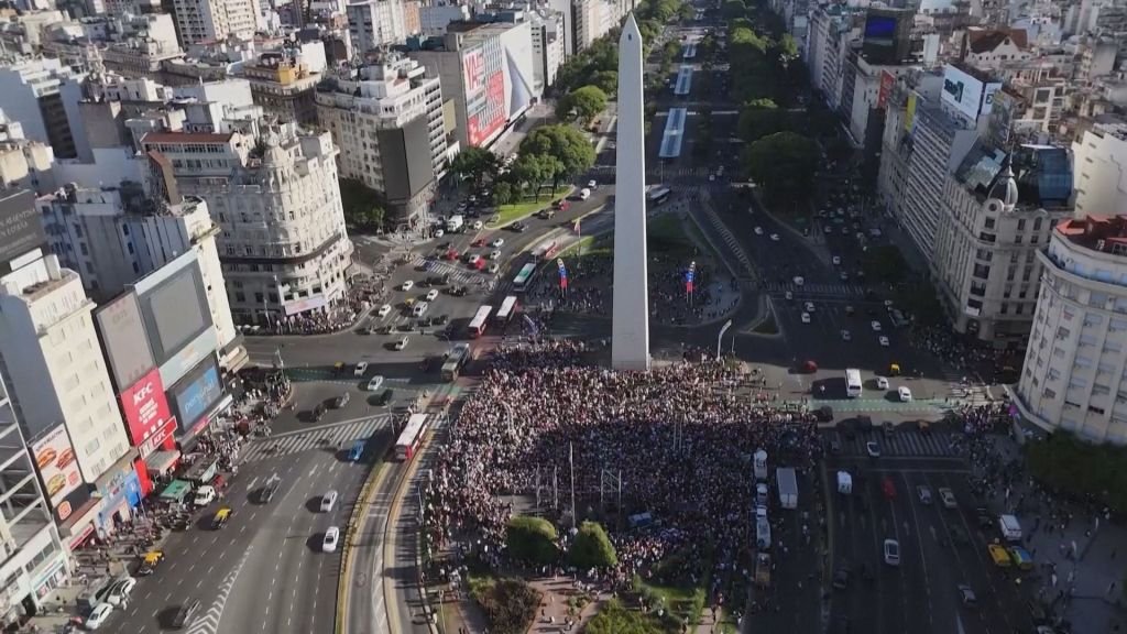 Multidão se reuniu na Praça da República, em torno do monumento histórico Obelisco, na capital da Argentina  Internacional, América Latina, Donald Trump, Estados Unidos, Nicolás Maduro, Venezuela CNN Brasil