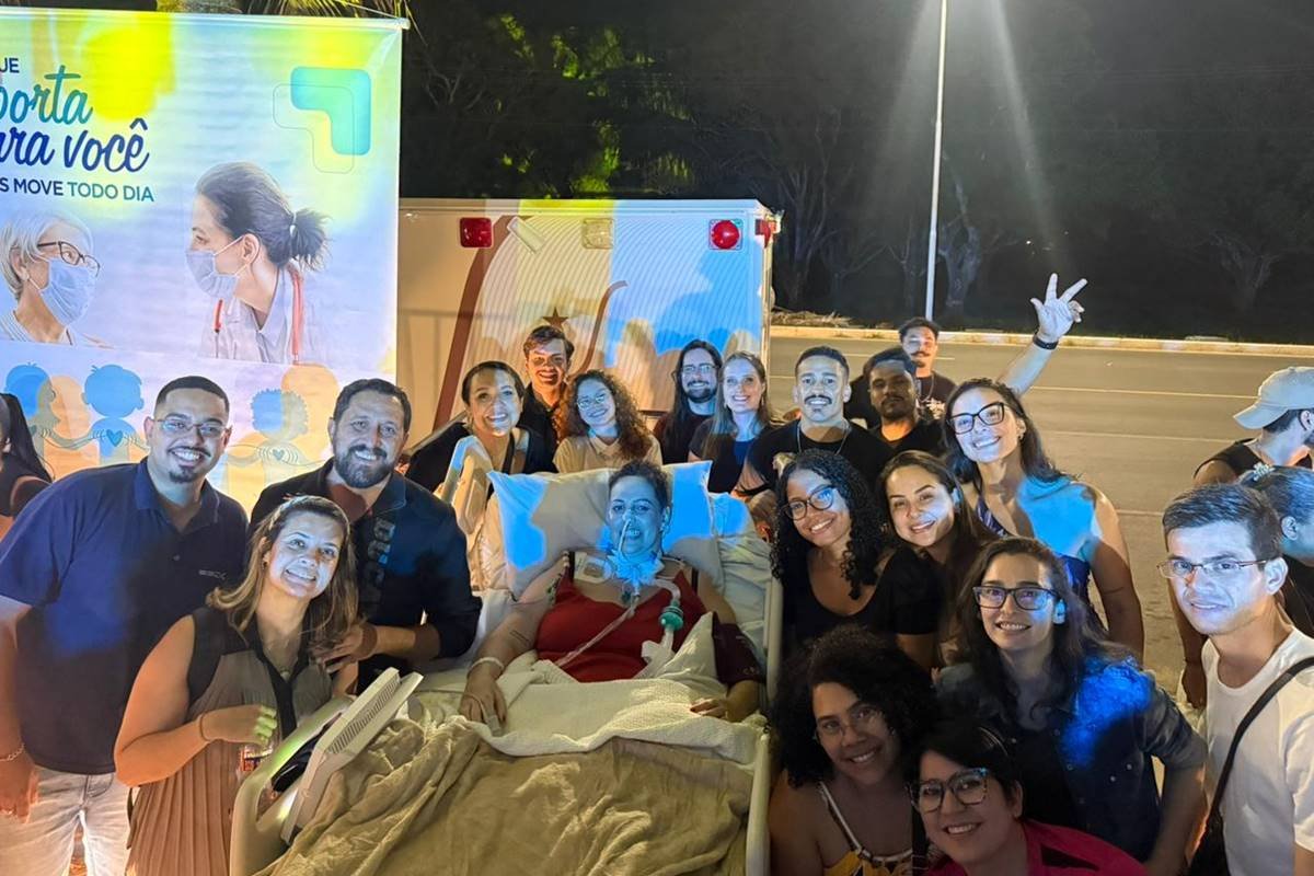 A paciente foi acompanhada por vários amigos, entre eles, a equipe multidisciplinar que cuida dela na UTI do hospital