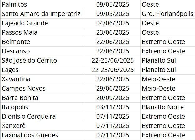 Três municípios — Dionísio Cerqueira, Xanxerê e Faxinal dos Guedes — foram afetados, com ocorrências de destelhamentos, quedas de árvores e danos em diversas residências.
