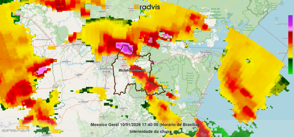 Em nota, a Defesa Civil Municipal pediu para que a população siga em alerta em razão das chuvas e dos ventos fortes registrados na tarde deste sábado (10), em São José dos Pinhais.