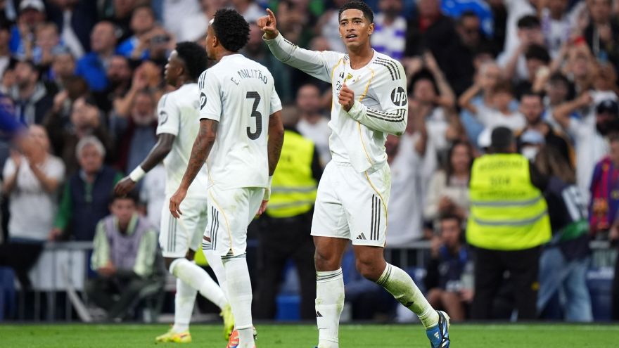 3 de 13Bellingham comemora gol do Real Madrid contra o Barcelona • Angel Martinez/Getty Images