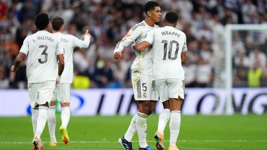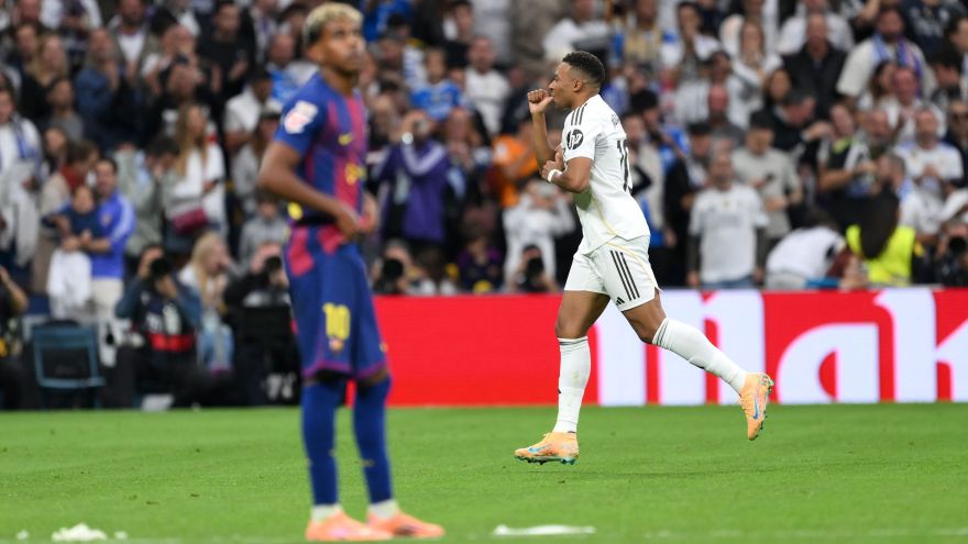 5 de 13Bellingham e Mbappé comemoram gol do Real Madrid contra o Barcelona • Angel Martinez/Getty Images