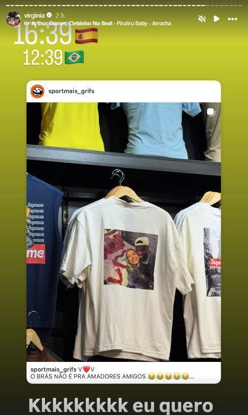 Portal Nação® > Noticias > outros > Virginia diz que quer camisa com foto do pedido de namoro de Vini Jr.