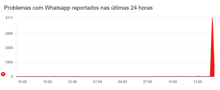 De acordo com a ferramenta Downdetector, que monitora problemas em sites e apps, foram mais de quatro mil notificações de problemas com o WhatsApp durante a tarde. Veja o gráfico abaixo: