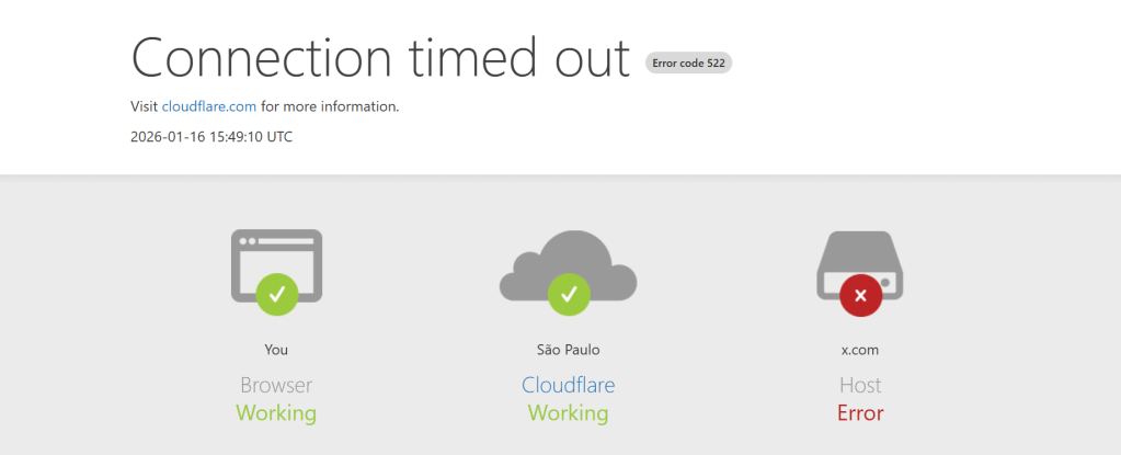 Ao abrir a página do X, um aviso de “conexão expirada” aparece na tela.